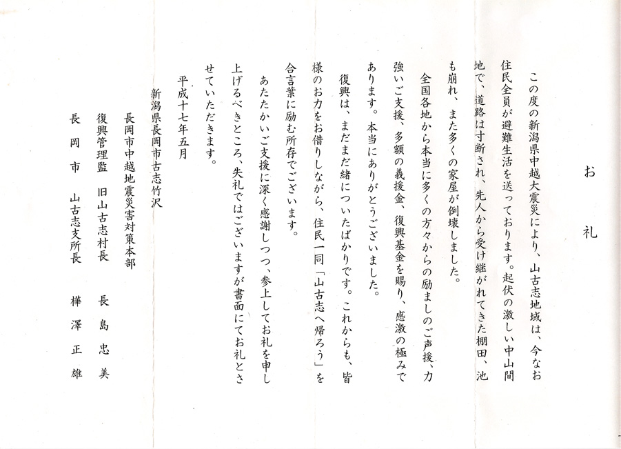 ■ 2011年6月8日 福島県南相馬原町区災害ボランティアセンターhttp://minamisoma.jimdo.comに133,731円を送金いたしました。