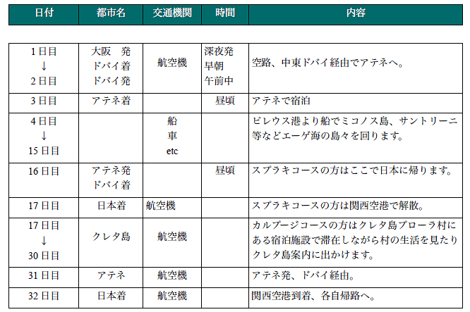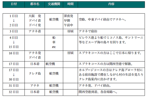 観光・訪問先:サントリーニ島・ミコノス島等エーゲ海の島々、アテネ、クレタ島。